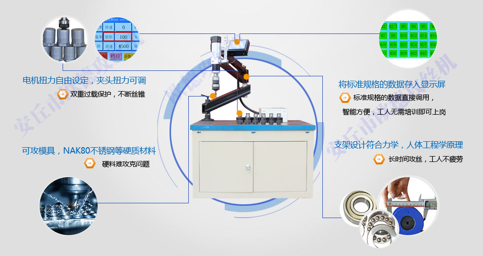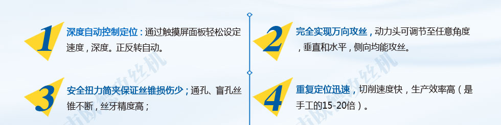 攻絲機具有設計新穎制作精良工藝先進。歡迎各國客商與我們洽談業務。開發出了一系列技術領先的