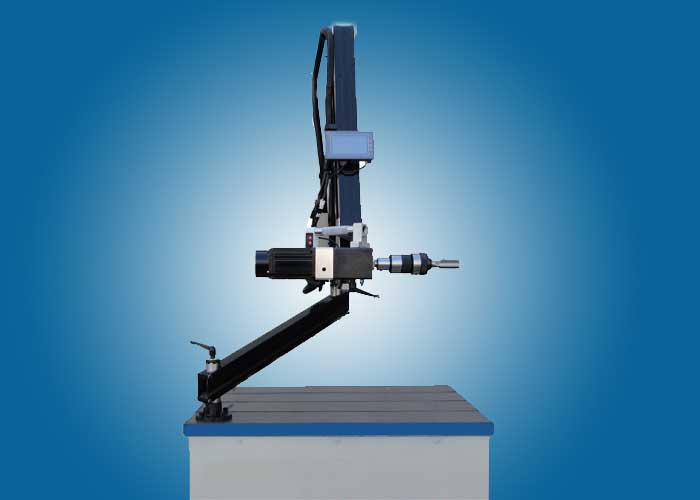 1、微電腦控制,扭矩大小可調,盲孔不斷絲錐:可根據攻絲的大小自行調節扭矩,加上扭力夾頭過載保護,雙重保護,不斷絲錐;主軸在半徑1200/2000MM內任意移動。
